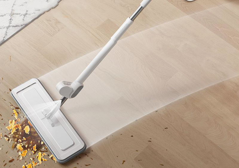 Wooden floors are most afraid of excessive water. Flat mops usually come with a wringing device or a hands-free cleaning system, allowing the mop head to be wrung to a slightly damp state, preventing water from seeping into the floor gaps.